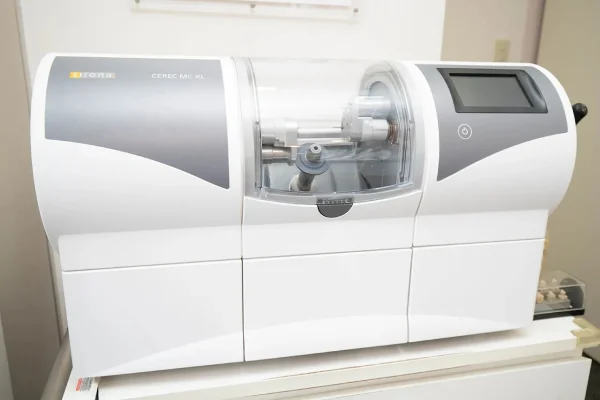 保険診療内では、金属のいわゆる「銀歯」を詰め物・被せ物として使用していますが、金属アレルギーのある方や見た目が気になる方へ「セラミック治療」も提供しています。 当院ではセレック(セラミック治療)システムを導入しており、院内で詰め物・被せ物といった補綴物を最短当日で作製し、1回の麻酔で歯を削って被せるところまで進めています。 セレックは通院回数を減らすことが可能になるだけでなく、歯科技工所に製作を依頼することなく費用を比較的抑えることができます。お仕事などで忙しく、何度も歯科医院に通うことができないといった方におすすめです。 また、当院ではセラミックもジルコニアも費用を抑えて提供していますので、自由診療は費用の負担が大きい、というイメージをお持ちの方もご検討いただきやすいと思います。